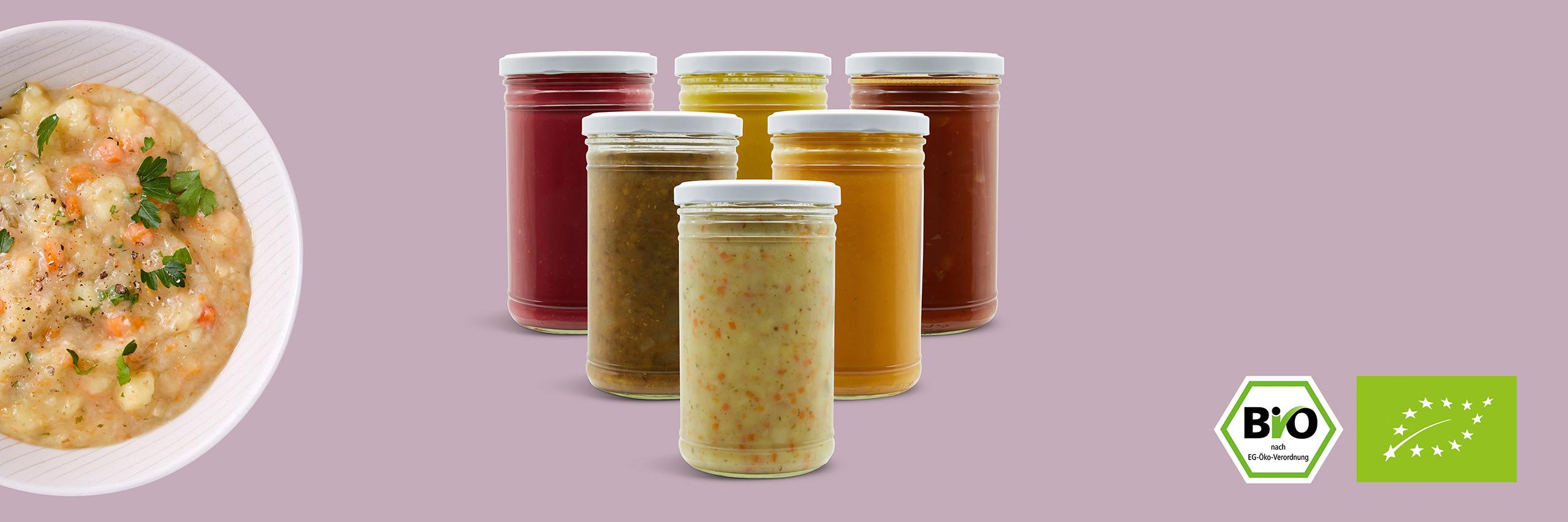 Vegetarische Kraftsuppen im Glas für die erste Woche nach der Entbindung! Perfekt abgestimmt auf den Bedarf der Mutter: entgiftend, basisch, milchbildend, Eisenwert stabilisierend, kräftigend und leicht verdaulich.
